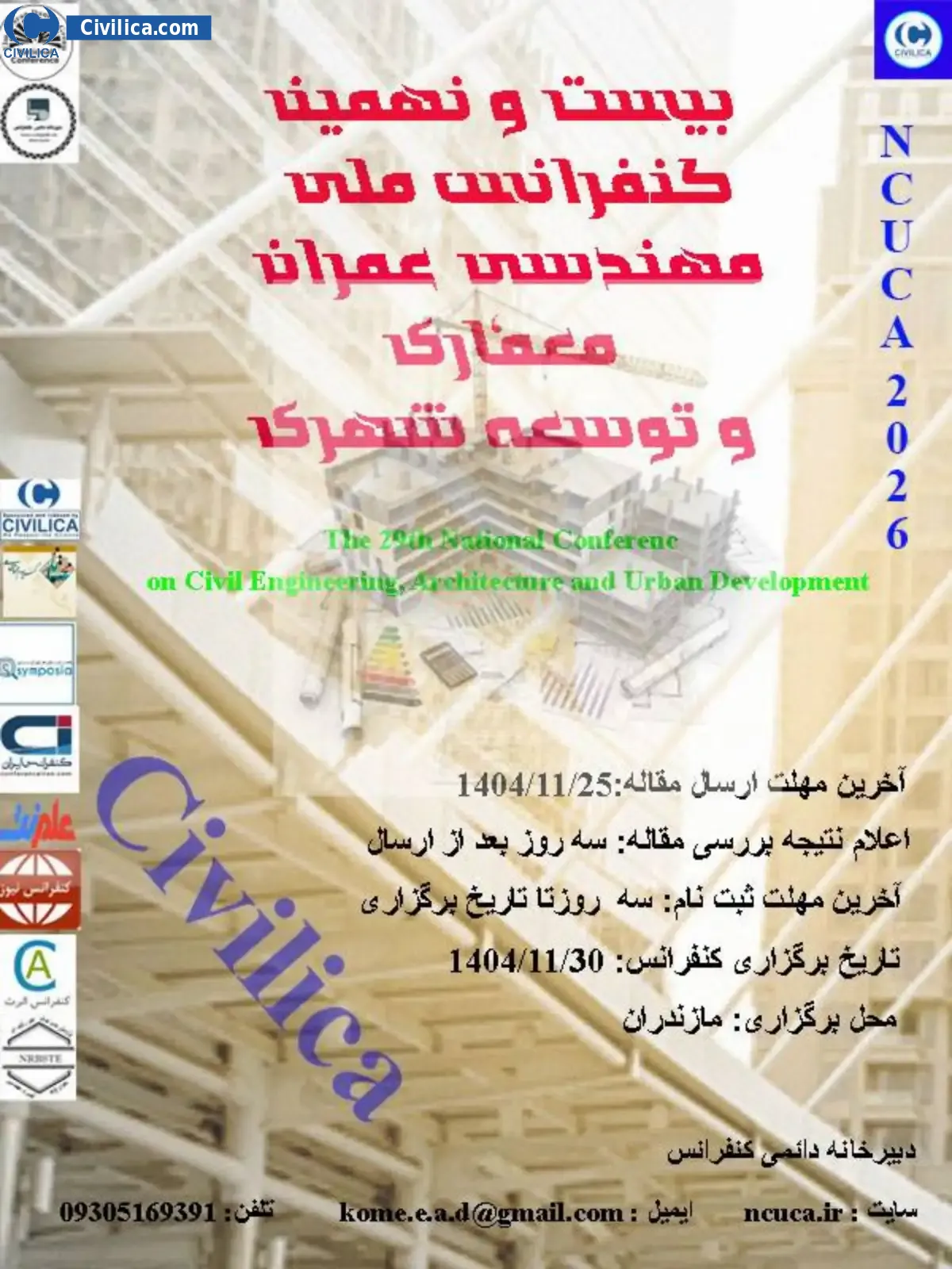 بیست و نهمین کنفرانس ملی مهندسی عمران، معماری و توسعه شهری