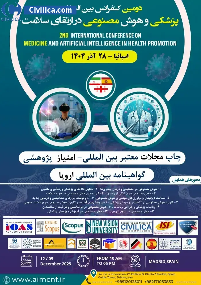 دومین کنفرانس بین المللی پزشکی و هوش مصنوعی در ارتقای سلامت در تاریخ ۲۸ آذر ۱۴۰۴ توسط ،سازمان بین المللی مطالعات دانشگاهی برگزار خواهد شد.با توجه به اینکه این همایش به صورت رسمی برگزار می گردد، کلیه مقالات این کنفرانس در پایگاه سیویلیکا و نیز کنسرسیوم محتوای ملی نمایه خواهد شد و شما می توانید با اطمینان کامل، مقالات خود را در این همایش ارائه نموده و از امتیازات علمی ارائه مقاله کنفرانس با دریافت گواهی کنفرانس استفاده نمایید.