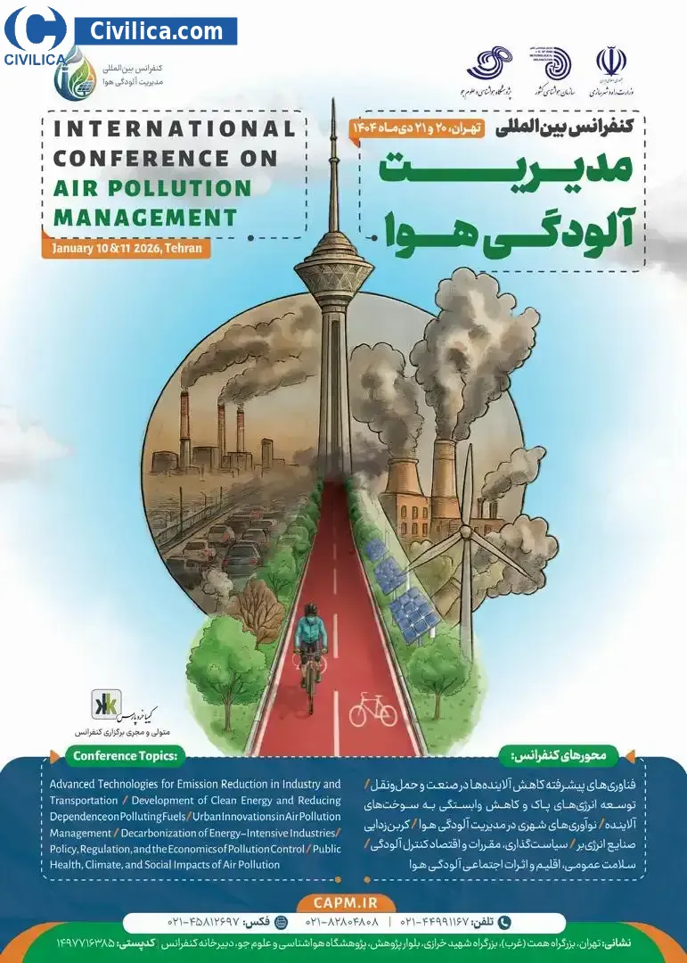 کنفرانس بین المللی مدیریت آلودگی هوا در تاریخ ۲۶ بهمن ۱۴۰۴ توسط پژوهشگاه هواشناسی و علوم جو،سازمان هواشناسی کشوروزارت راه و شهرسازی در شهر تهران برگزار گردید.این همایش تحت حمایت سیویلیکا بوده است و به محض اتمام مراحل نمایه سازی، مقالات آن از طریق همین پایگاه منتشر خواهد شد.