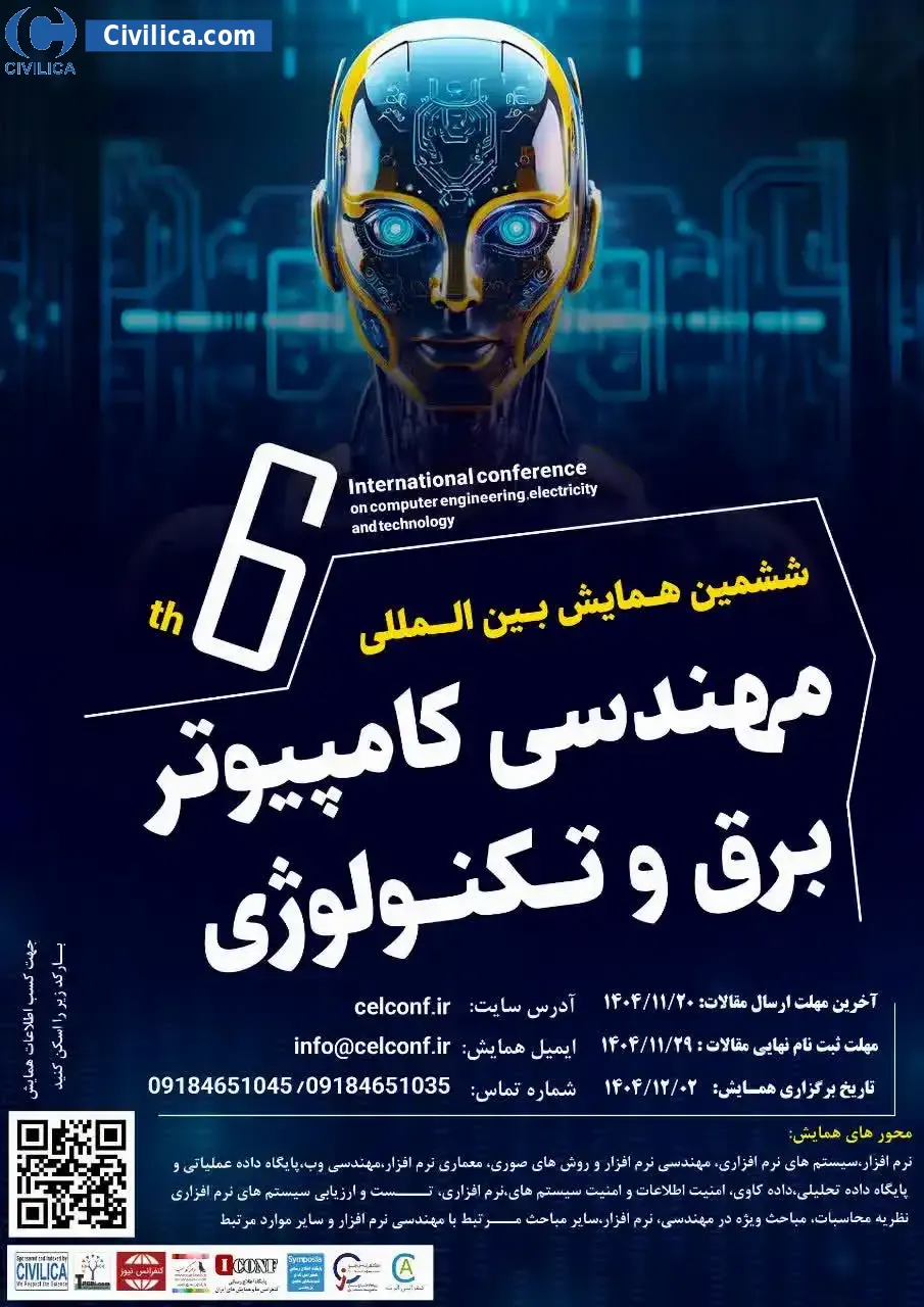 ششمین همایش بین المللی مهندسی کامپیوتر، برق و تکنولوژی در تاریخ ۲ اسفند ۱۴۰۴ توسط ،دبیرخانه دائمی همایش در شهر همدان برگزار خواهد شد.با توجه به اینکه این همایش به صورت رسمی برگزار می گردد، کلیه مقالات این کنفرانس در پایگاه سیویلیکا و نیز کنسرسیوم محتوای ملی نمایه خواهد شد و شما می توانید با اطمینان کامل، مقالات خود را در این همایش ارائه نموده و از امتیازات علمی ارائه مقاله کنفرانس با دریافت گواهی کنفرانس استفاده نمایید.