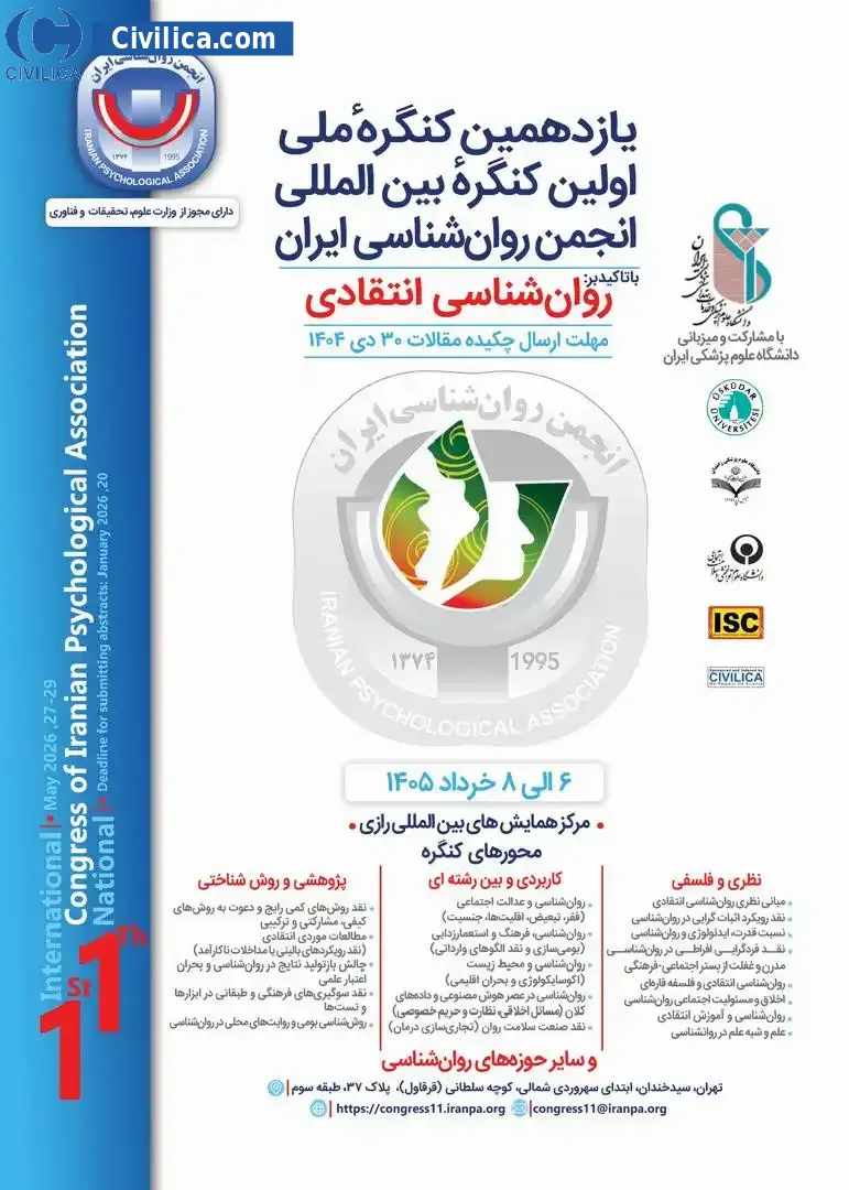 یازدهمین کنگره سالیانه و اولین کنگره بین المللی انجمن روان شناسی ایران با موضوع "روان شناسی انتقادی" در تاریخ ۶ خرداد ۱۴۰۵ توسط ،انجمن روان شناسی ایران در شهر تهران برگزار خواهد شد.با توجه به اینکه این همایش به صورت رسمی برگزار می گردد، کلیه مقالات این کنفرانس در پایگاه سیویلیکا و نیز کنسرسیوم محتوای ملی نمایه خواهد شد و شما می توانید با اطمینان کامل، مقالات خود را در این همایش ارائه نموده و از امتیازات علمی ارائه مقاله کنفرانس با دریافت گواهی کنفرانس استفاده نمایید.