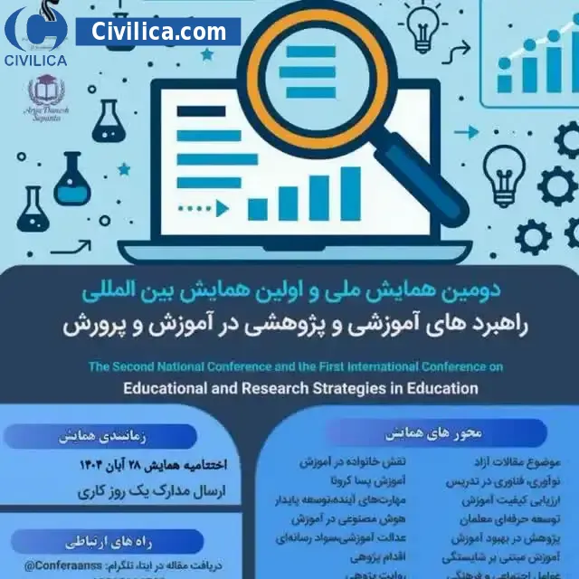دومین همایش ملی و اولین همایش بین المللی راهبرد های آموزشی و پژوهشی در آموزش و پرورش در تاریخ ۱۵ دی ۱۴۰۴ توسط ،شرکت دانا ماندگار پارس در شهر اهواز برگزار گردید.این همایش تحت حمایت سیویلیکا بوده است و به محض اتمام مراحل نمایه سازی، مقالات آن از طریق همین پایگاه منتشر خواهد شد.