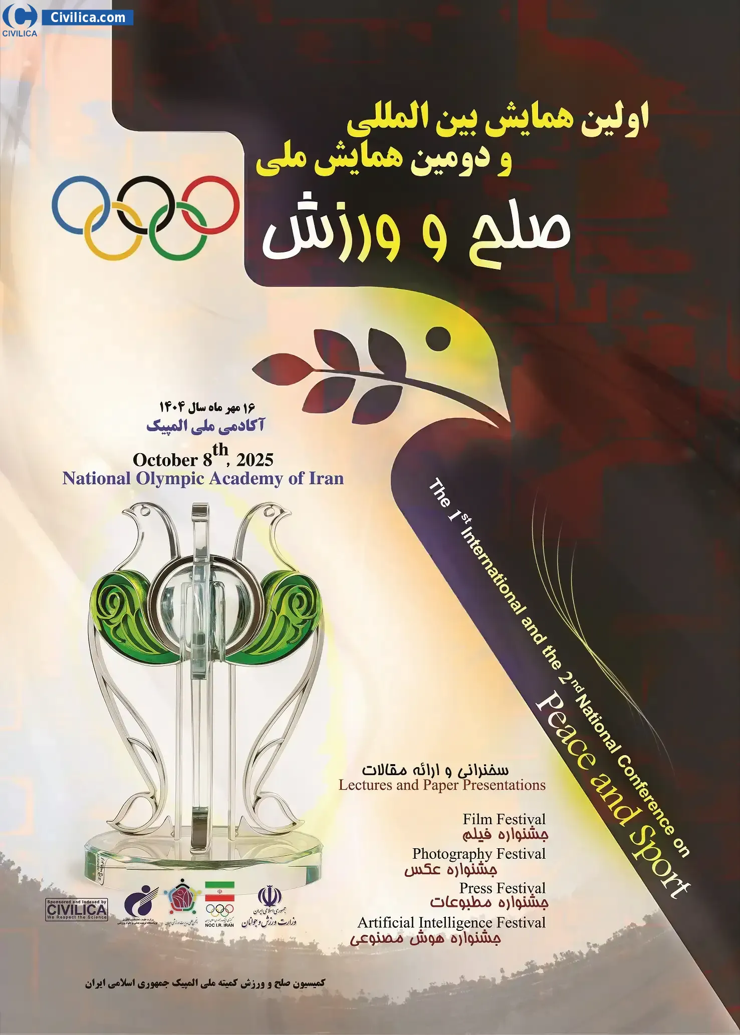 اولین همایش بین المللی و دومین همایش ملی صلح و ورزش در تاریخ ۱۶ مهر ۱۴۰۴ توسط ،انجمن علمی مدیریت ورزشی ایرانکمیته ملی المپیک در شهر تهران برگزار گردید. شما می توانید برای دریافت کلیه مقالات پذیرفته شده در این کنفرانس به صفحه مجموعه مقالات اولین همایش بین المللی و دومین همایش ملی صلح و ورزش مراجعه فرمایید.