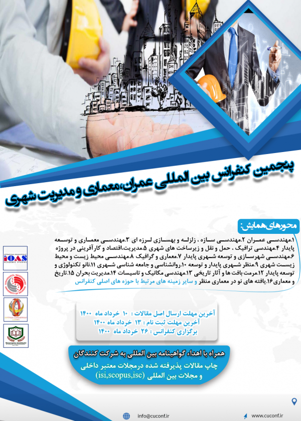مقالات پذیرش شده در پنجمین کنفرانس بین المللی عمران،معماری و مدیریت شهری