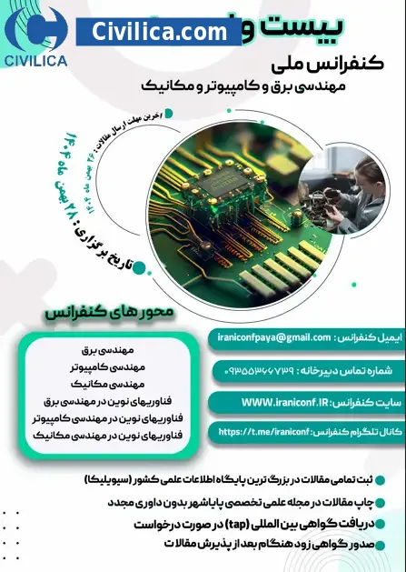 بیست و نهمین کنفرانس ملی مهندسی برق ،کامپیوتر و مکانیک در تاریخ ۲۸ بهمن ۱۴۰۴ توسط ،موسسه پایاشهردبیرخانه دائمی کنفرانس در شهر شیروان برگزار خواهد شد.با توجه به اینکه این همایش به صورت رسمی برگزار می گردد، کلیه مقالات این کنفرانس در پایگاه سیویلیکا و نیز کنسرسیوم محتوای ملی نمایه خواهد شد و شما می توانید با اطمینان کامل، مقالات خود را در این همایش ارائه نموده و از امتیازات علمی ارائه مقاله کنفرانس با دریافت گواهی کنفرانس استفاده نمایید.