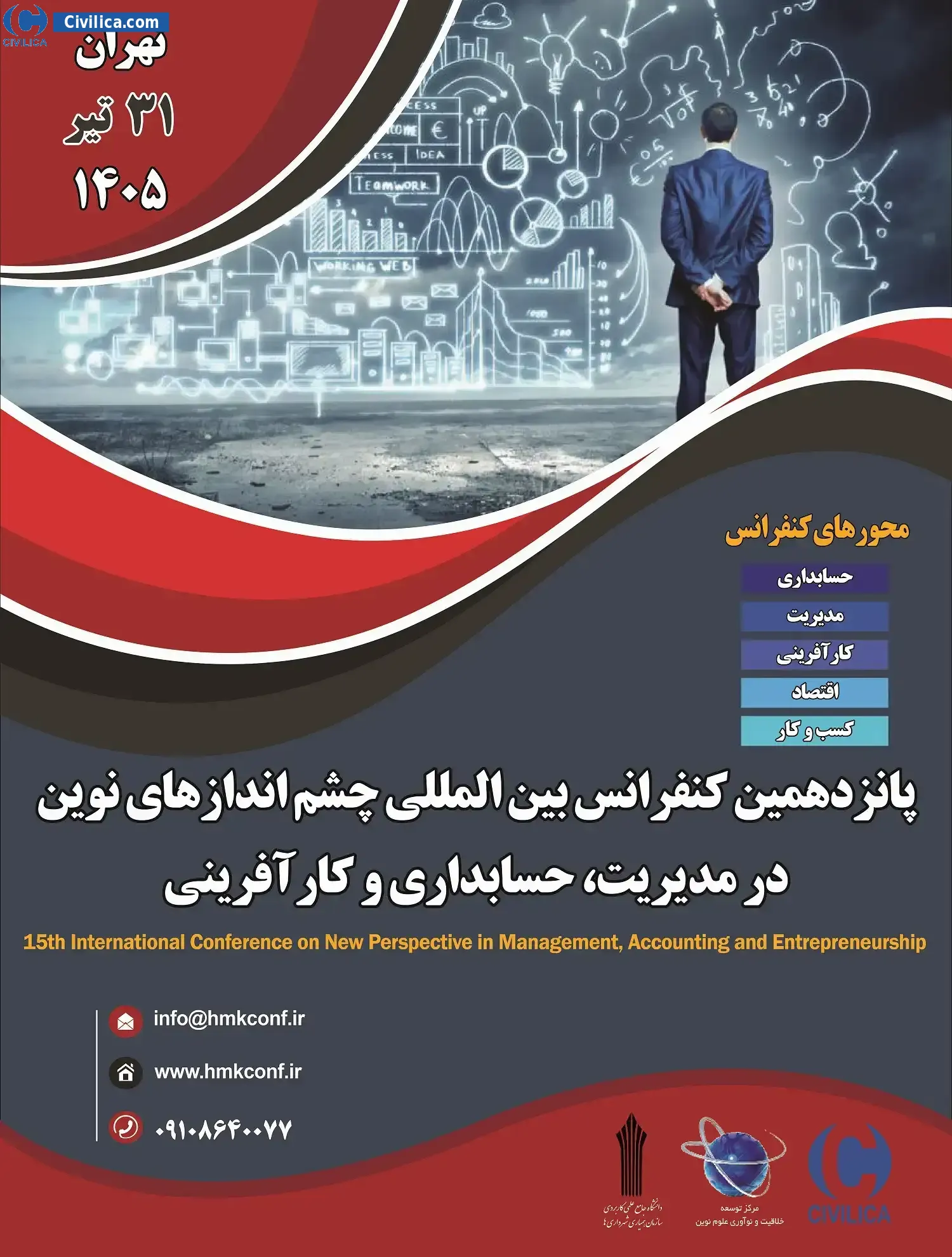 پانزدهمین کنفرانس بین المللی چشم اندازهای نوین در مدیریت، حسابداری و کارآفرینی در تاریخ ۳۱ تیر ۱۴۰۵ توسط ،دانشگاه جامع علمی کاربردی سازمان همیاری شهرداری ها و مرکز توسعه خلاقیت و نوآوری علوم نوین در شهر تهران برگزار خواهد شد.با توجه به اینکه این همایش به صورت رسمی برگزار می گردد، کلیه مقالات این کنفرانس در پایگاه سیویلیکا و نیز کنسرسیوم محتوای ملی نمایه خواهد شد و شما می توانید با اطمینان کامل، مقالات خود را در این همایش ارائه نموده و از امتیازات علمی ارائه مقاله کنفرانس با دریافت گواهی کنفرانس استفاده نمایید.