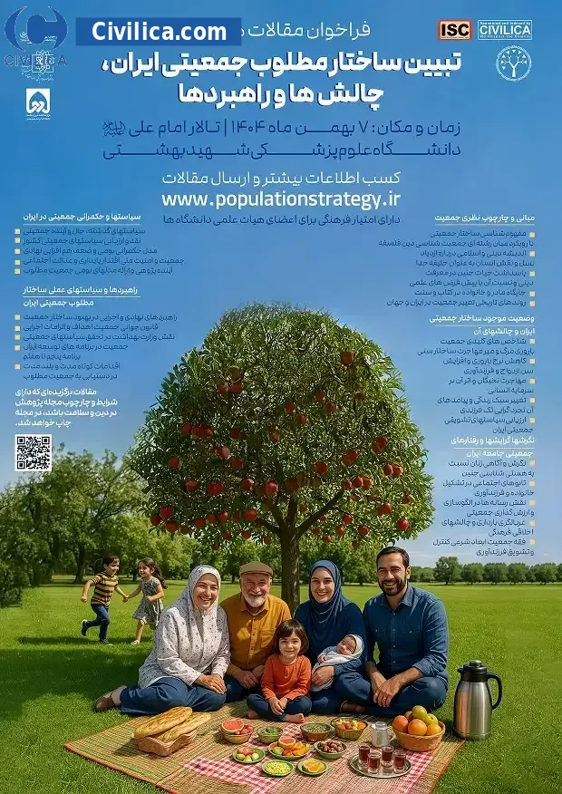 همایش تبیین ساختار مطلوب جمعیتی ایران: چالش ها و راهبردها در تاریخ ۷ بهمن ۱۴۰۴ توسط دانشگاه علوم پزشکی و خدمات بهداشتی درمانی شهید بهشتی، در شهر تهران برگزار خواهد شد.با توجه به اینکه این همایش به صورت رسمی برگزار می گردد، کلیه مقالات این کنفرانس در پایگاه سیویلیکا و نیز کنسرسیوم محتوای ملی نمایه خواهد شد و شما می توانید با اطمینان کامل، مقالات خود را در این همایش ارائه نموده و از امتیازات علمی ارائه مقاله کنفرانس با دریافت گواهی کنفرانس استفاده نمایید.