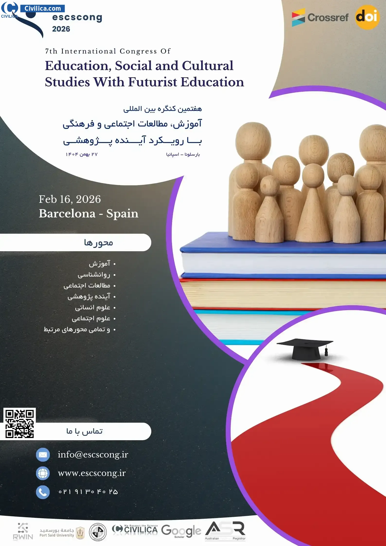 هفتمین کنگره بین المللی آموزش، مطالعات اجتماعی و فرهنگی با رویکرد آینده پژوهی در تاریخ ۲۷ بهمن ۱۴۰۴ توسط ،همایش آروین البرز برگزار خواهد شد.با توجه به اینکه این همایش به صورت رسمی برگزار می گردد، کلیه مقالات این کنفرانس در پایگاه سیویلیکا و نیز کنسرسیوم محتوای ملی نمایه خواهد شد و شما می توانید با اطمینان کامل، مقالات خود را در این همایش ارائه نموده و از امتیازات علمی ارائه مقاله کنفرانس با دریافت گواهی کنفرانس استفاده نمایید.