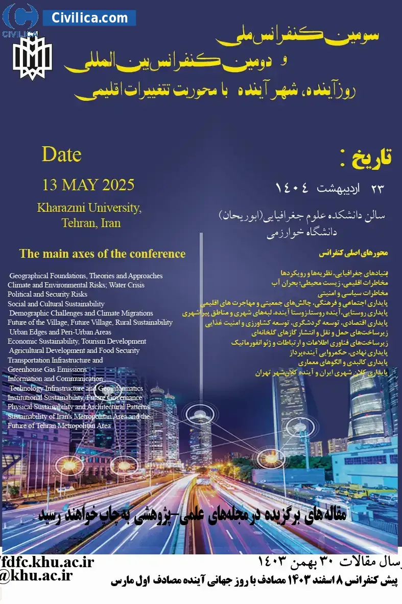 مقالات پذیرش شده در سومین کنفرانس ملی و دومین کنفرانس بین المللی روز آینده، شهر آینده: با محوریت تغییرات اقلیمی