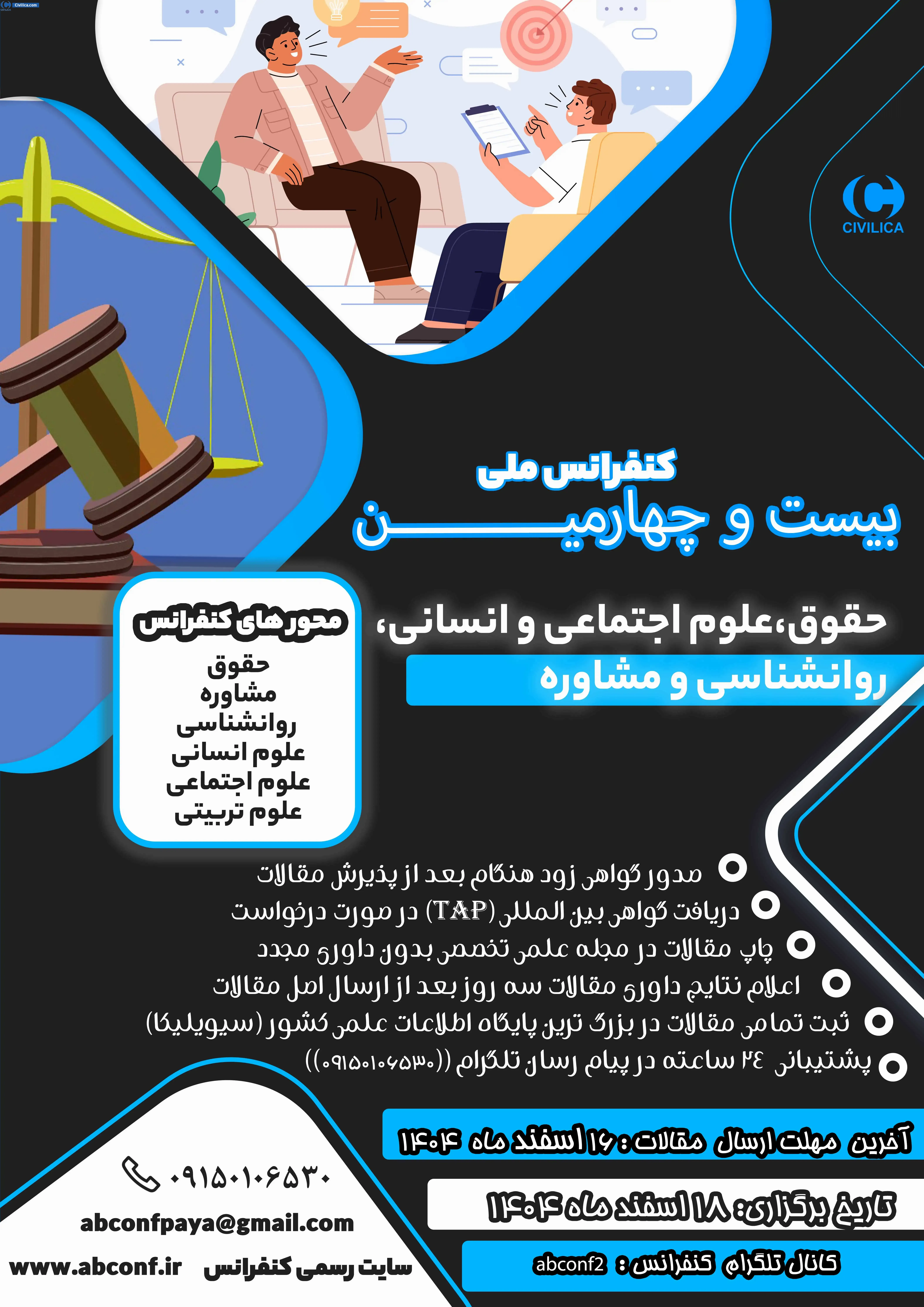 بیست و چهارمین کنفرانس ملی حقوق، علوم اجتماعی و انسانی، روانشناسی و مشاوره