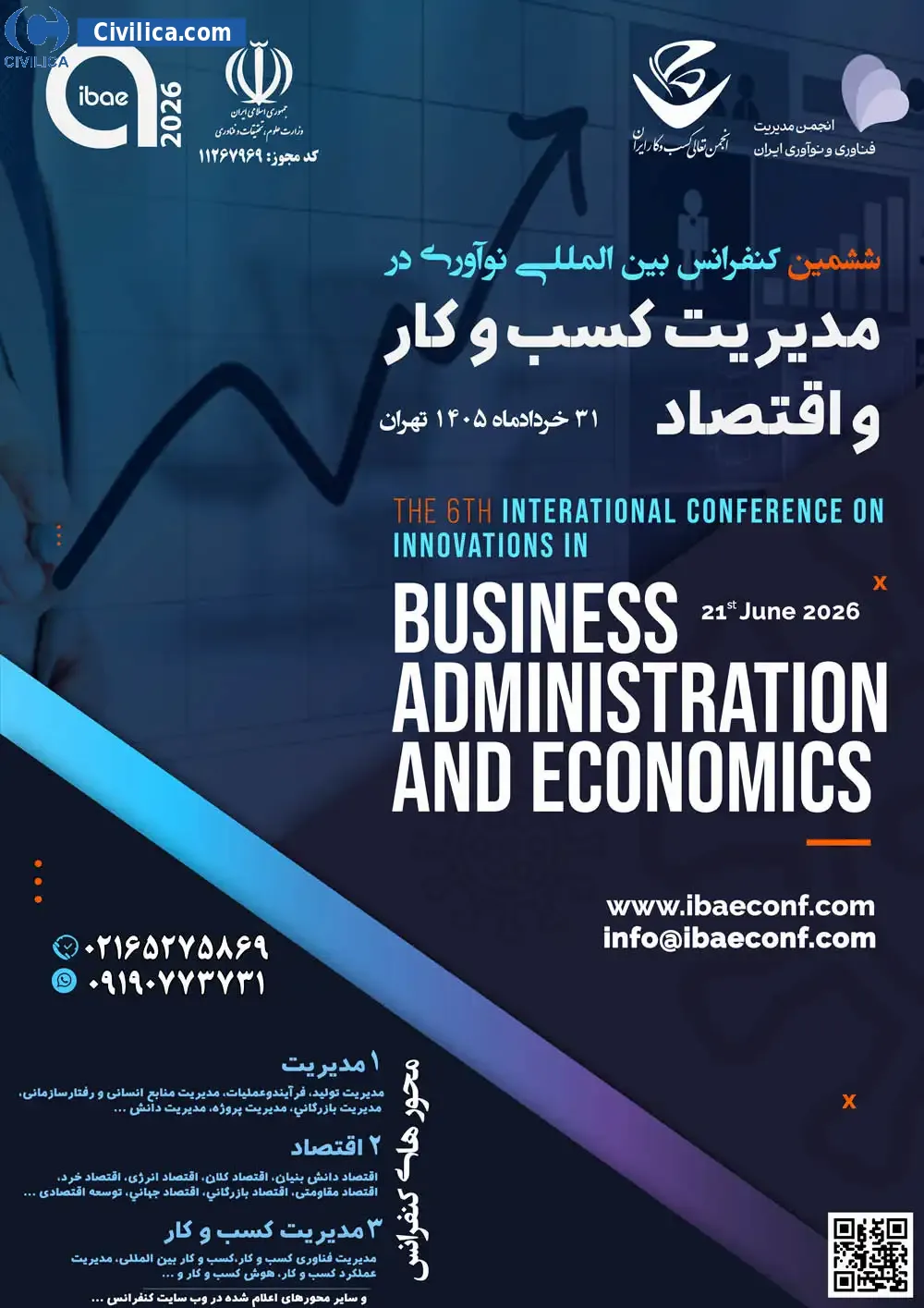 ششمین کنفرانس بین المللی نوآوری در مدیریت کسب و کار و اقتصاد در تاریخ ۳۱ خرداد ۱۴۰۵ توسط ،انجمن تعالی کسب و کار ایرانانجمن مدیریت فناوری و نوآوری ایران در شهر تهران برگزار خواهد شد.با توجه به اینکه این همایش به صورت رسمی برگزار می گردد، کلیه مقالات این کنفرانس در پایگاه سیویلیکا و نیز کنسرسیوم محتوای ملی نمایه خواهد شد و شما می توانید با اطمینان کامل، مقالات خود را در این همایش ارائه نموده و از امتیازات علمی ارائه مقاله کنفرانس با دریافت گواهی کنفرانس استفاده نمایید.