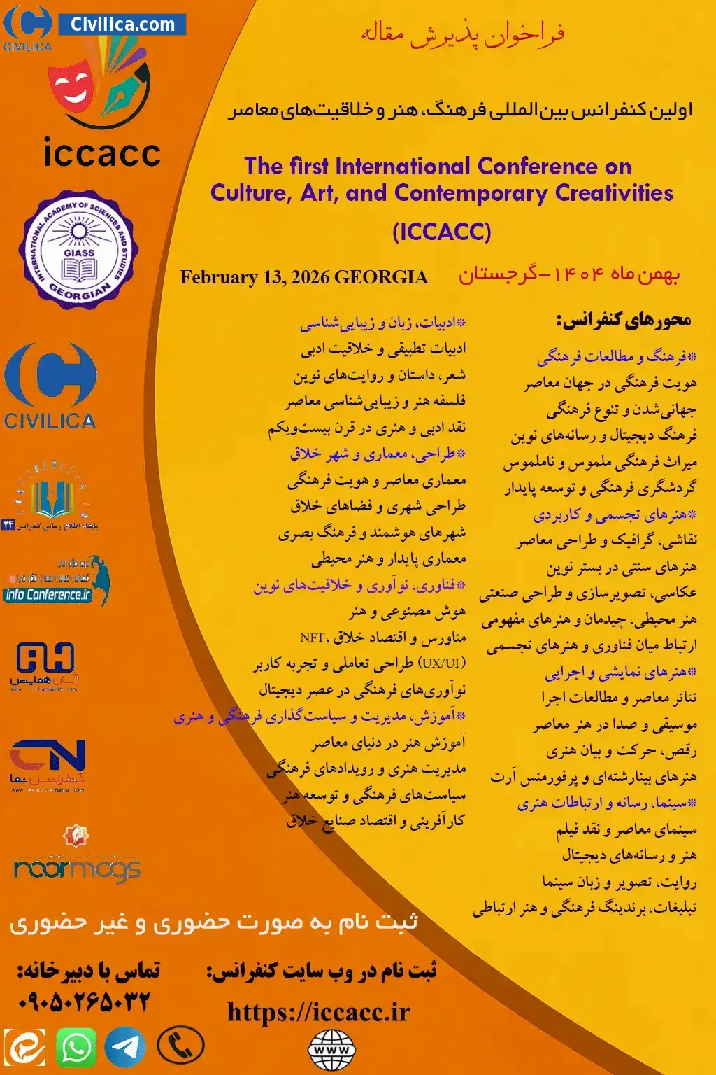 اولین کنفرانس بین المللی فرهنگ، هنر و خلاقیت های معاصر در تاریخ ۲۴ بهمن ۱۴۰۴ توسط ،آکادمی بین المللی علوم و مطالعات گرجستان برگزار خواهد شد.با توجه به اینکه این همایش به صورت رسمی برگزار می گردد، کلیه مقالات این کنفرانس در پایگاه سیویلیکا و نیز کنسرسیوم محتوای ملی نمایه خواهد شد و شما می توانید با اطمینان کامل، مقالات خود را در این همایش ارائه نموده و از امتیازات علمی ارائه مقاله کنفرانس با دریافت گواهی کنفرانس استفاده نمایید.