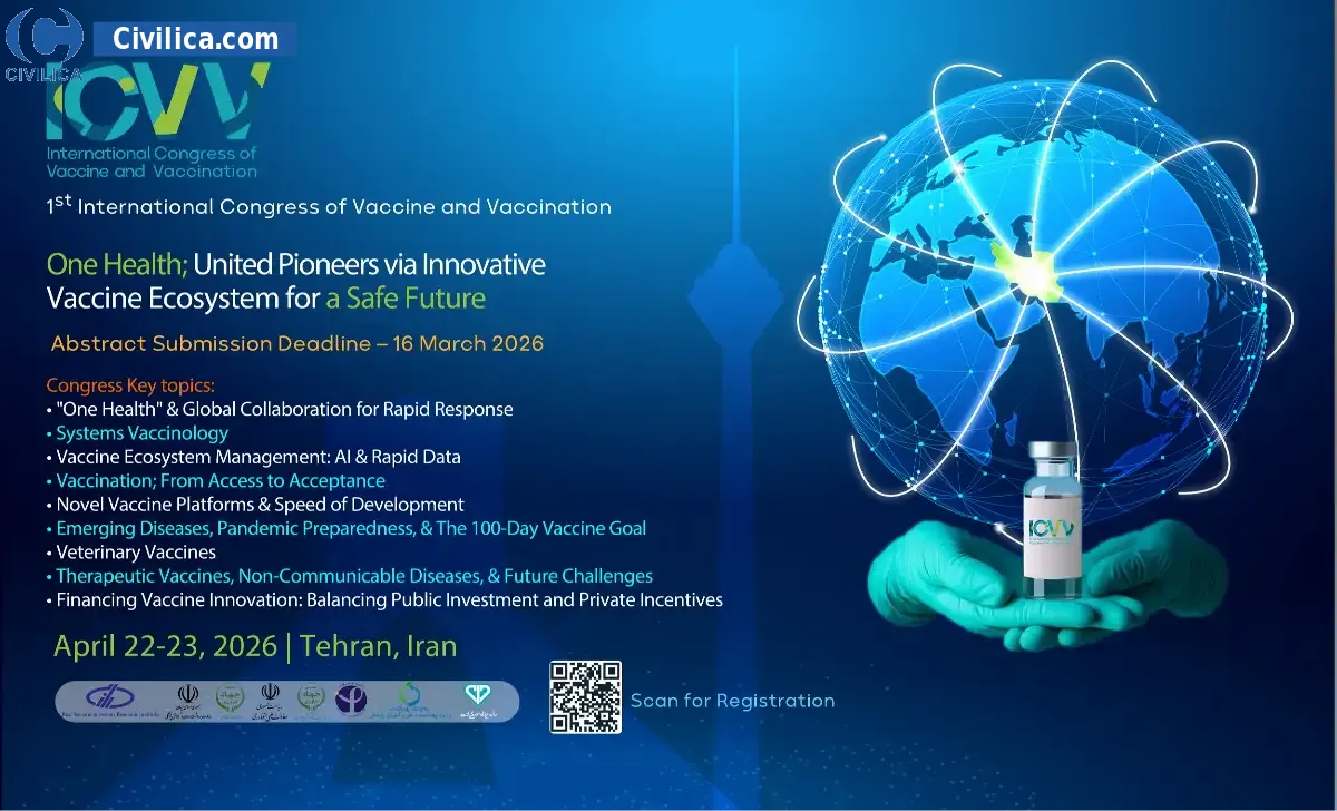 نخستین کنگره بین المللی واکسن و واکسیناسیون (ICVV) در تاریخ ۲ اردیبهشت ۱۴۰۵ توسط انستیتو پاستور ایران،موسسه تحقیقات واکسن و سرمسازی رازی در شهر تهران برگزار خواهد شد.با توجه به اینکه این همایش به صورت رسمی برگزار می گردد، کلیه مقالات این کنفرانس در پایگاه سیویلیکا و نیز کنسرسیوم محتوای ملی نمایه خواهد شد و شما می توانید با اطمینان کامل، مقالات خود را در این همایش ارائه نموده و از امتیازات علمی ارائه مقاله کنفرانس با دریافت گواهی کنفرانس استفاده نمایید.