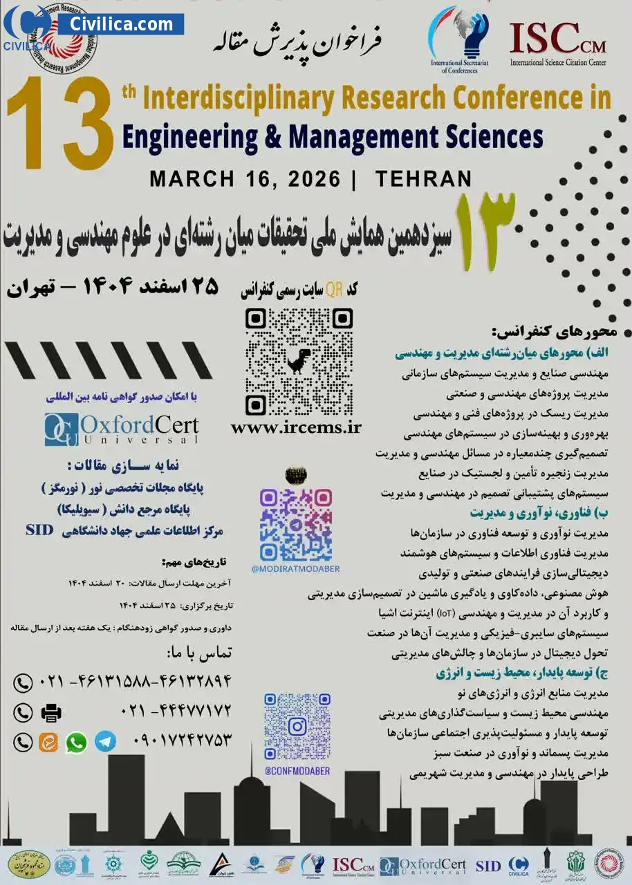سیزدهمین همایش ملی تحقیقات میان رشته ای در علوم مهندسی و مدیریت