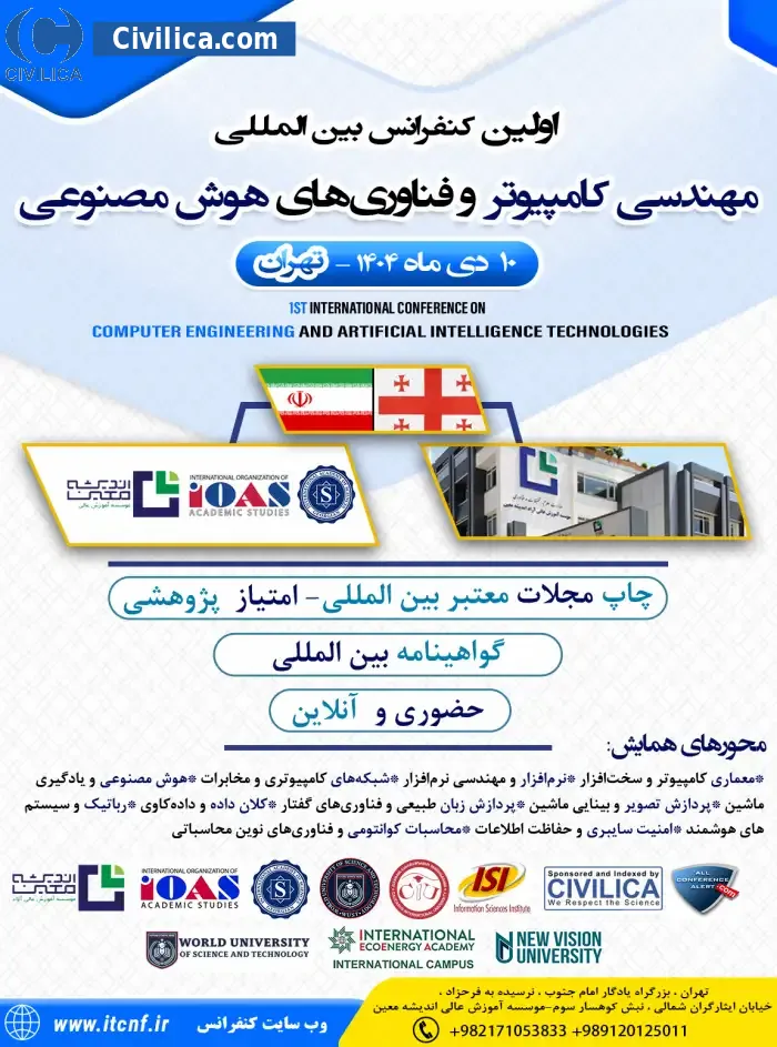 اولین کنفرانس بین المللی مهندسی کامپیوتر و فناوری های هوش مصنوعی در تاریخ ۱۰ دی ۱۴۰۴ توسط ، سازمان بین المللی مطالعات دانشگاهی و موسسه عالی اندیشه معین در شهر تهران برگزار گردید.این همایش تحت حمایت سیویلیکا بوده است و به محض اتمام مراحل نمایه سازی، مقالات آن از طریق همین پایگاه منتشر خواهد شد.