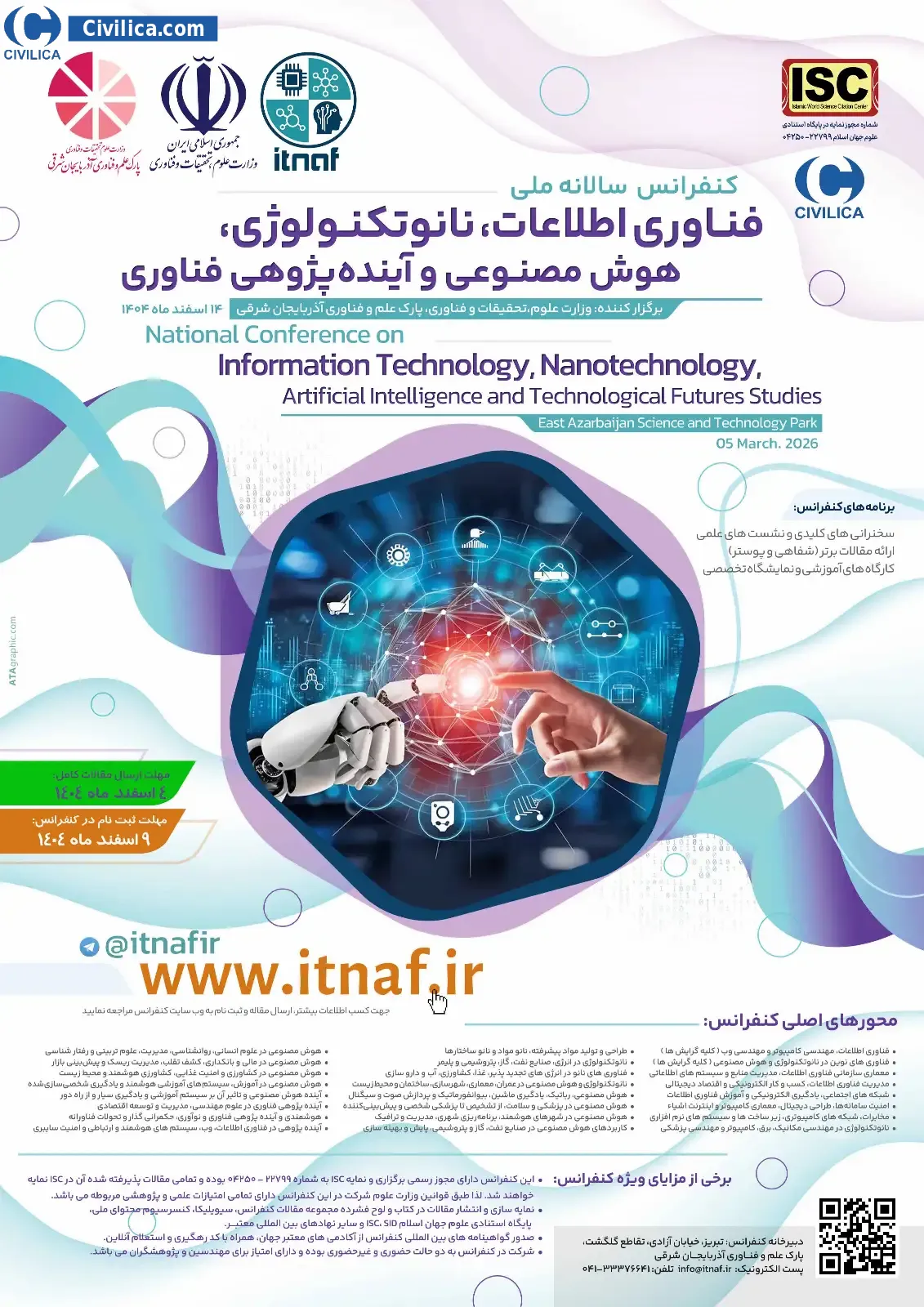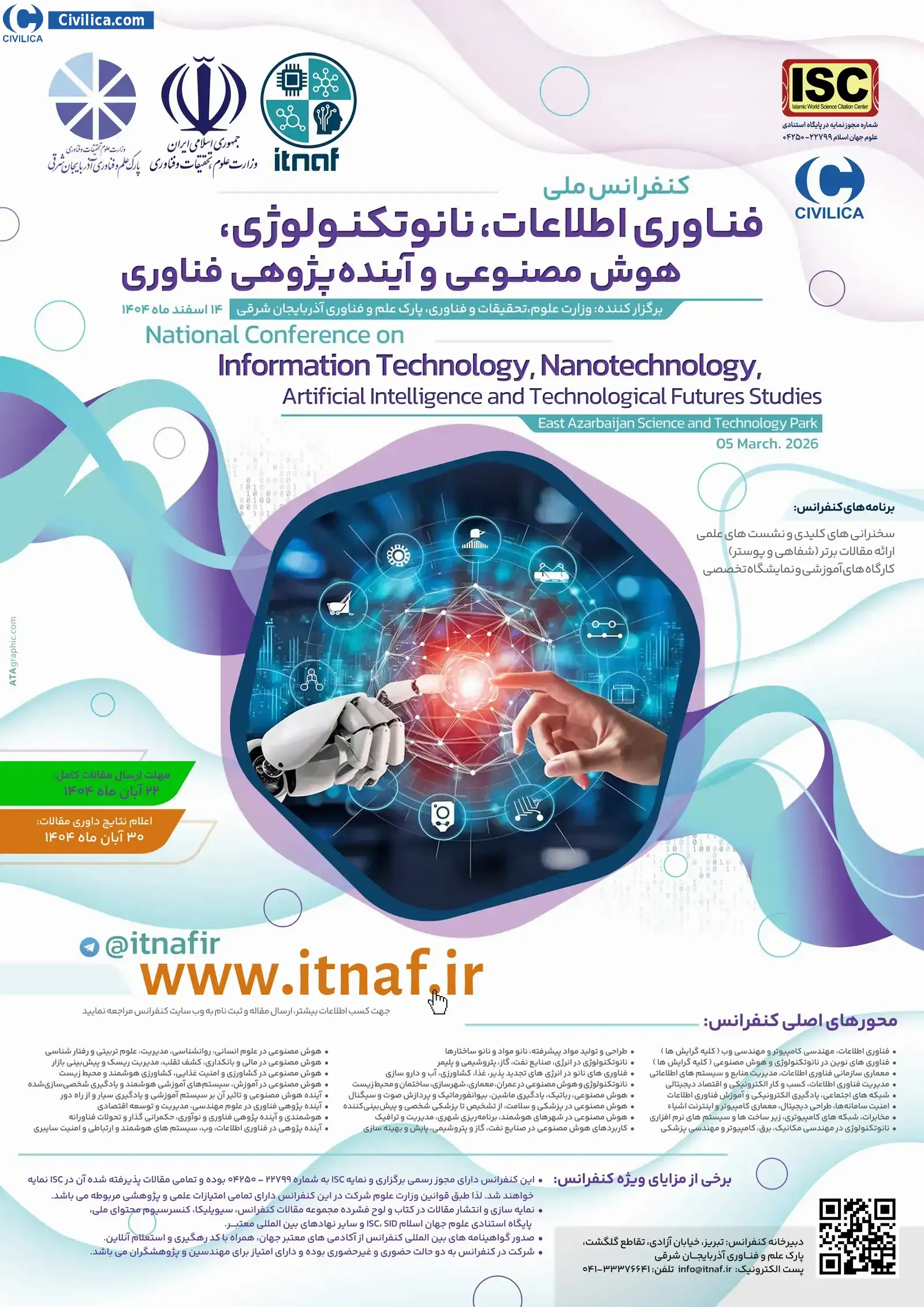 کنفرانس سالانه ملی فناوری اطلاعات، نانوتکنولوژی، هوش مصنوعی و آینده پژوهی فناوری در تاریخ ۱۴ اسفند ۱۴۰۴ توسط ،وزارت علوم، تحقیقات و فناوری، پارک علم و فناوری آذربایجان شرقی، با همکاری ساير دانشگاه هاي برجسته كشور برگزار خواهد شد.با توجه به اینکه این همایش به صورت رسمی برگزار می گردد، کلیه مقالات این کنفرانس در پایگاه سیویلیکا و نیز کنسرسیوم محتوای ملی نمایه خواهد شد و شما می توانید با اطمینان کامل، مقالات خود را در این همایش ارائه نموده و از امتیازات علمی ارائه مقاله کنفرانس با دریافت گواهی کنفرانس استفاده نمایید.