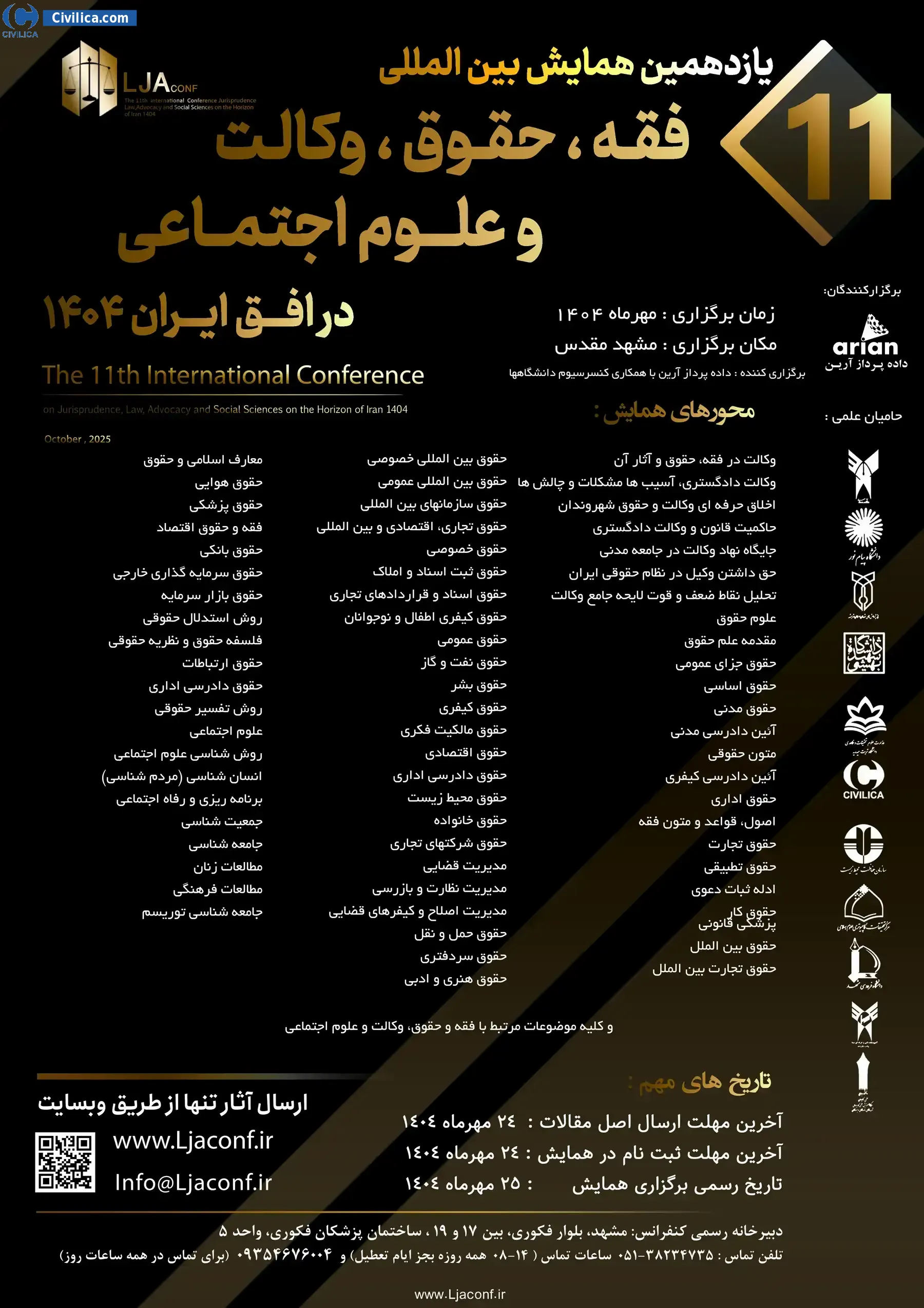 یازدهمین کنفرانس بین المللی فقه، حقوق ، وکالت و علوم اجتماعی در افق ایران ۱۴۰۴