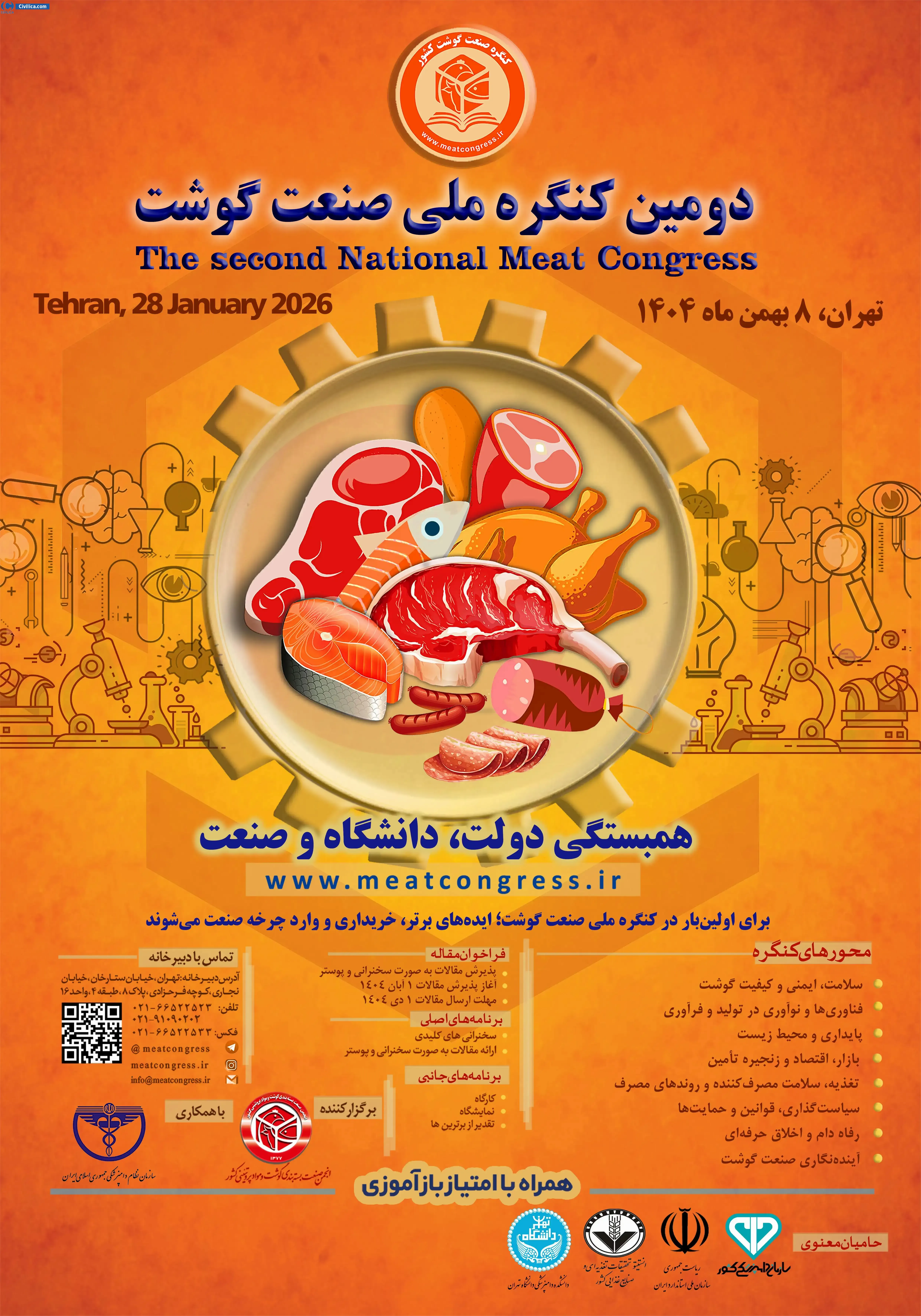 دومین کنگره ملی صنعت گوشت در تاریخ ۸ بهمن ۱۴۰۴ توسط ،انجمن صنعت گوشت و مواد پروتئینی کشور سازمان نظام دامپزشکی جمهوری اسلامی ایران در شهر تهران برگزار خواهد شد.با توجه به اینکه این همایش به صورت رسمی برگزار می گردد، کلیه مقالات این کنفرانس در پایگاه سیویلیکا و نیز کنسرسیوم محتوای ملی نمایه خواهد شد و شما می توانید با اطمینان کامل، مقالات خود را در این همایش ارائه نموده و از امتیازات علمی ارائه مقاله کنفرانس با دریافت گواهی کنفرانس استفاده نمایید.
