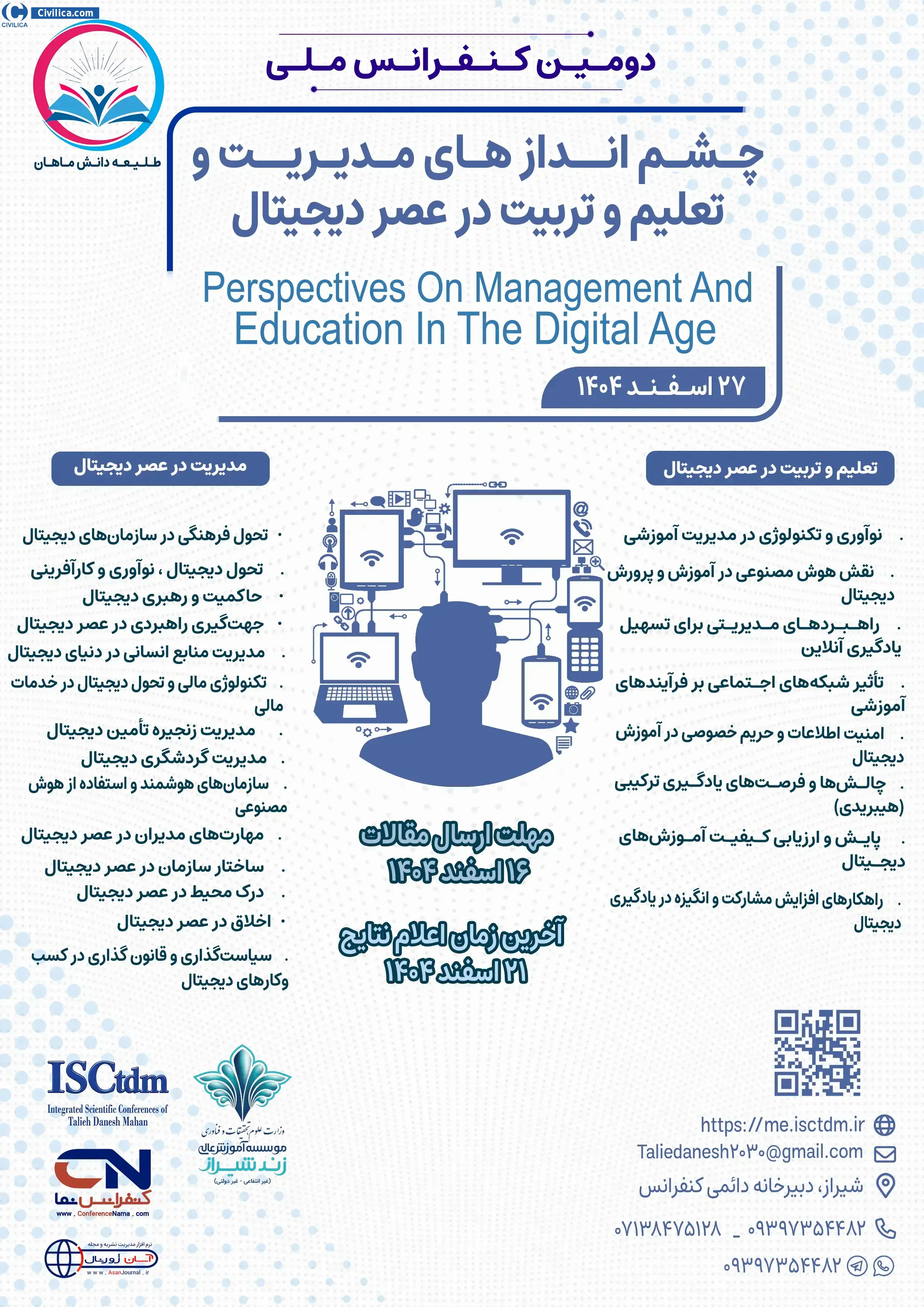 دومین کنفرانس ملی چشم انداز های مدیریت و تعلیم و تربیت در عصر دیجیتال