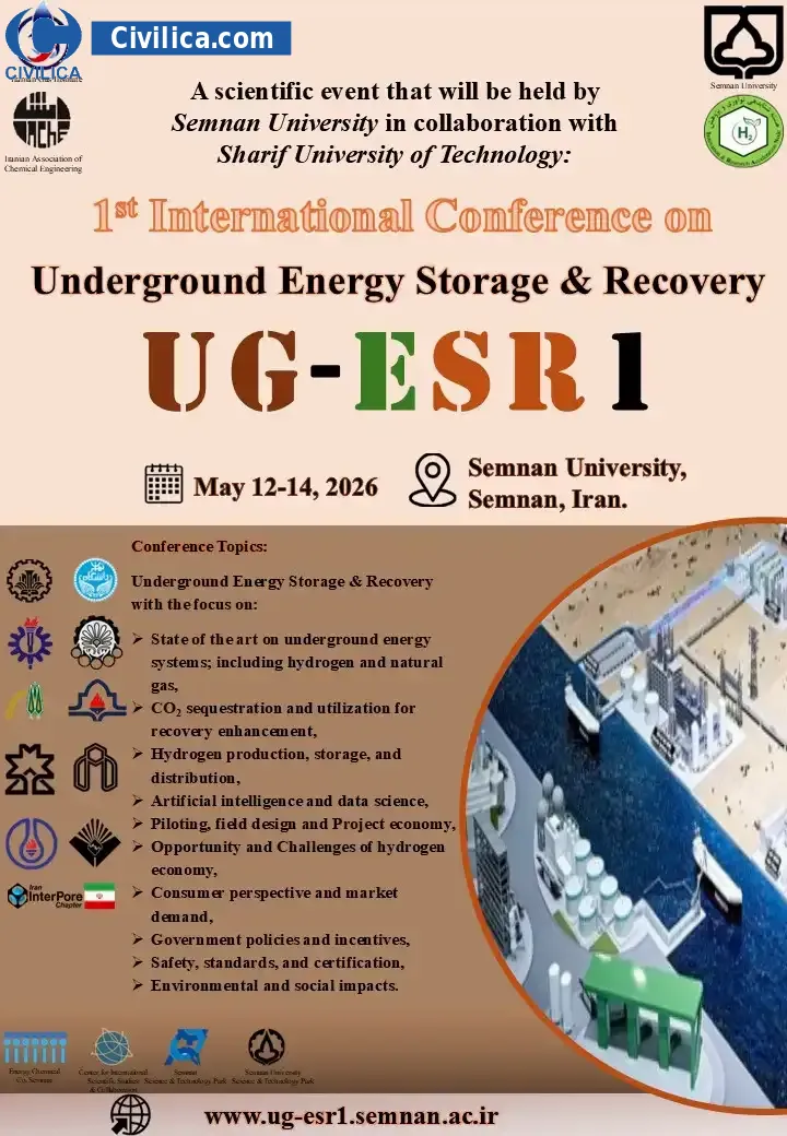 اولین کنفرانس بین المللی ذخیره سازی زیرزمینی انرژی و بازیابی آن در تاریخ ۲۲ اردیبهشت ۱۴۰۵ توسط دانشگاه سمنان،انجمن مهندسی شیمی ایران در شهر سمنان برگزار خواهد شد.با توجه به اینکه این همایش به صورت رسمی برگزار می گردد، کلیه مقالات این کنفرانس در پایگاه سیویلیکا و نیز کنسرسیوم محتوای ملی نمایه خواهد شد و شما می توانید با اطمینان کامل، مقالات خود را در این همایش ارائه نموده و از امتیازات علمی ارائه مقاله کنفرانس با دریافت گواهی کنفرانس استفاده نمایید.
